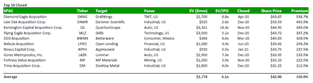 但总体而言,根据这些已公开的交易,我们仍能看到SPAC的发展势头强劲且前景乐观。 因此,成功完成交易的团队拥有了良好的信誉保障,会再进行另一个SPAC项目。 这种积极的反馈循环机制将持续一段时间,也可能是SPAC人气攀升的助燃剂。