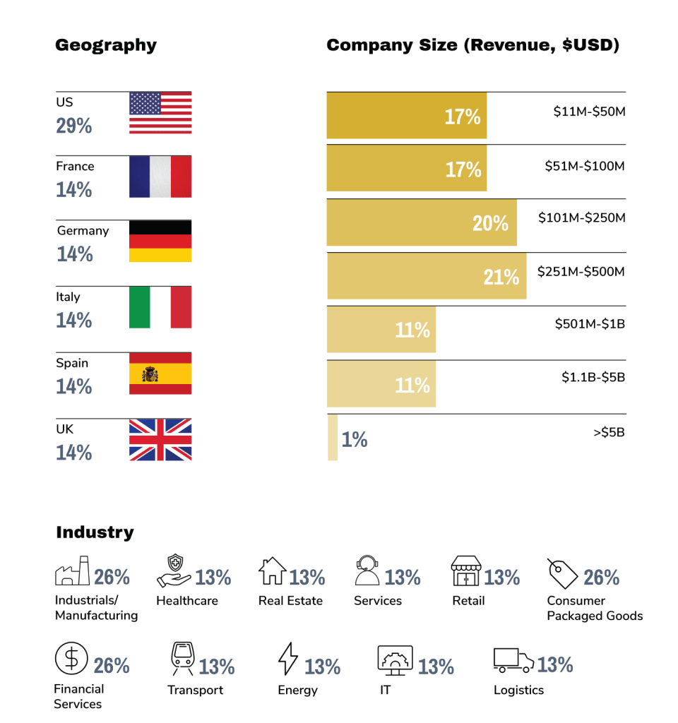To better understand how business leaders regard the impact of these factors on the global economy, GLG conducted a survey of 70 CFOs in the U.S., France, Germany, Italy, Spain, and the U.K. Respondents included companies with annual revenue of more than $11 million across a wide range of industries.