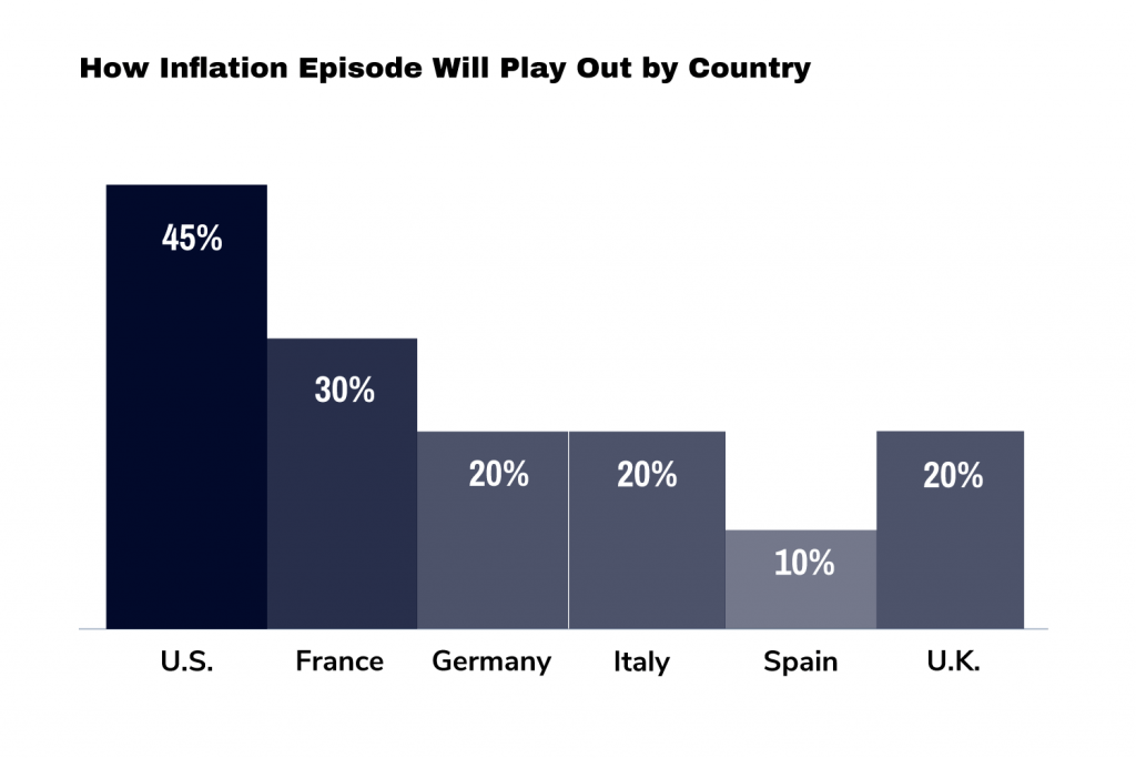 While only a few of the CFOs we surveyed felt we were already at the end of our current inflation surge, most recognized it was ongoing. However, our CFOs’ opinions differed by country regarding how the current inflationary period would play out. U.S. CFOs were the least optimistic, with nearly half (45%) reporting they believed the current era marked an end to low and stable inflation. Their European counterparts were more optimistic, with most indicating they believed this would be a temporary period before a return to normal.