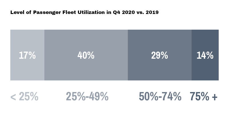 When asked about their fleet utilization, nearly 30% of those we surveyed said they continue to see significant decreases and recovery has been reversed in several key markets due to COVID-19 variants and government interventions.
